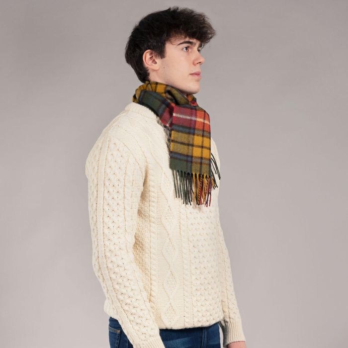 Tartan lambswool scarves are an essential accessory for any wardrobe. Wear this classic smart accessory draped over your shoulders or use it to wrap up warm. The ideal accessory for both menswear and womenswear.