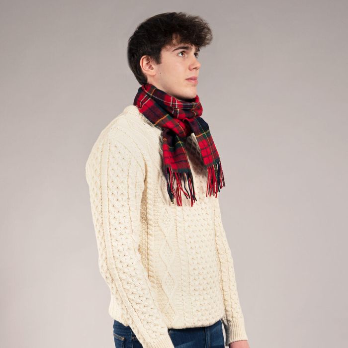 Tartan lambswool scarves are an essential accessory for any wardrobe. Wear this classic smart accessory draped over your shoulders or use it to wrap up warm. The ideal accessory for both menswear and womenswear.